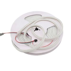 Адресный светодиодный неон представляет собой адресную ленту WS2811 в силиконовой оболочке. Светодиодная лента внутри может программироваться и управляться через пульт, приложение на смартфоне или компьютере (но для этого нужен контроллер). На каждом метре адресного неона установлено 20 управляющих чипов WS2811 (по 1 штуке на 3 диода), что позволяет создавать анимации в стиле "бегущий огонь", "эквалайзер" и многие другие.