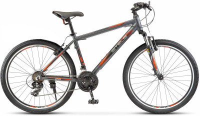 Горный байк Stels Navigator 620 V 26 для катания там, где вам хочется. Любые дороги и типы покрытия – 26-дюймовые колеса с широкими и прочными шинами одинаково хорошо держат как грунт, так и гравий или асфальт. Легкая и прочная алюминиевая рама, амортизированная вилка, удобное седло, простые ободные тормоза и качественная трансмиссия Shimano на 21 скорость – велосипед готов к любым испытаниям, характерным для прогулочного катания по природе.
