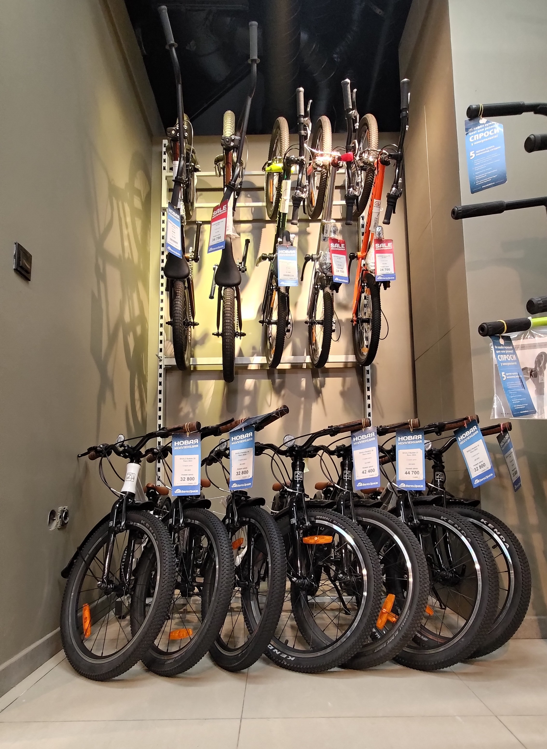 В магазине работает пункт аренды электровелосипедов для курьеров и не только. Стоимость указана